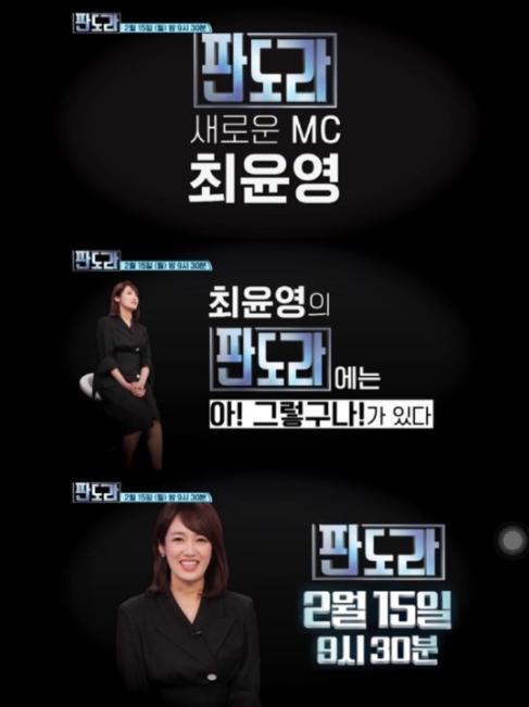 최윤영이 방송인 겸 라디오DJ 배철수(1대 MC)와 배우 김승우(2대 MC)에 이어 3대 MC로 오는 15일 방송부터 ‘판도라’에 합류하게 된 것.