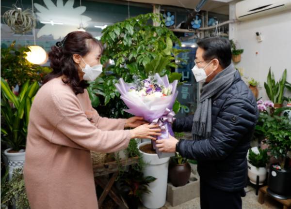 이에 이차영 괴산군수는 9일 관내 꽃집에서 꽃다발을 구입하고 관내 소상공인의 어려움을 듣는 등 「꽃같은 花요일」에 동참했다.