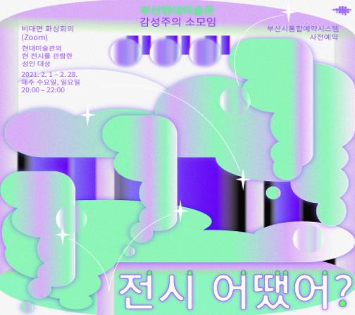 현대미술관에서 전시를 본 시민이라면 누구나 ‘부산시 통합예약시스템’에서 예약 가능하며, 예약자는 모임 전날 참여 코드를 문자로 받은 후 화상회의 프로그램인 줌(Zoom)에 접속하면 된다.