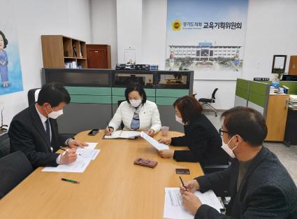 [한국연예축제일보, 허난세기자] 경기도의회 교육기획위원회 위원장 정윤경 의원(더불어민주당, 군포1)은 9일 임채철 부위원장(더불어민주당, 성남5)과 함께 경기도교육청 관계자들로부터 남양주FC 축구클럽 학생 교통사고 현황 및 대책과 관련한 논의 시간을 가졌다.