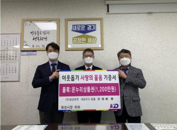 10일 ㈜화성여객은 코로나19 장기화로 어려움을 겪고 있는 이웃을 위해 온누리상품권 1만원권 총 1천2백 매를 화성시에 전달했다.