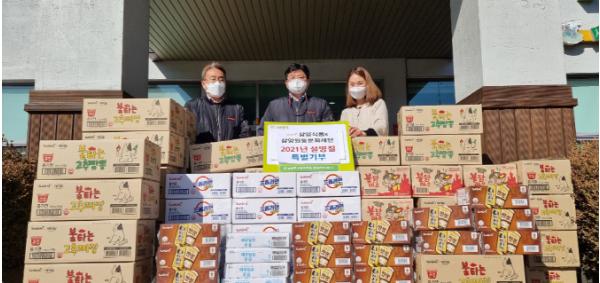 [한국연예축제일보, 유혜경기자] 삼양식품은 지난 8일 설 명절을 맞아 남양주시복지재단 산하 서부희망케어센터에 라면 80박스와 소스류 10박스, 우유 10박스(약 250만원 상당)를 전달했다.