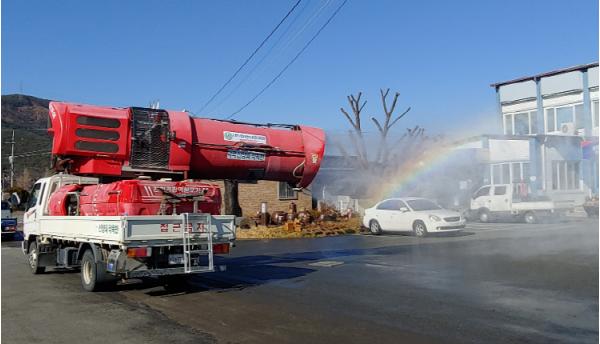 최근 코로나19 재확산으로 인한 위기 상황에 적극 대응하고, 다가오는 설날에 귀성객이 모일 것을 대비하는 사전적 조치로 실시하였으며, 특히 농업용 광역방제기를 활용하여 관내 구석구석 대규모 방역을 실시했다.