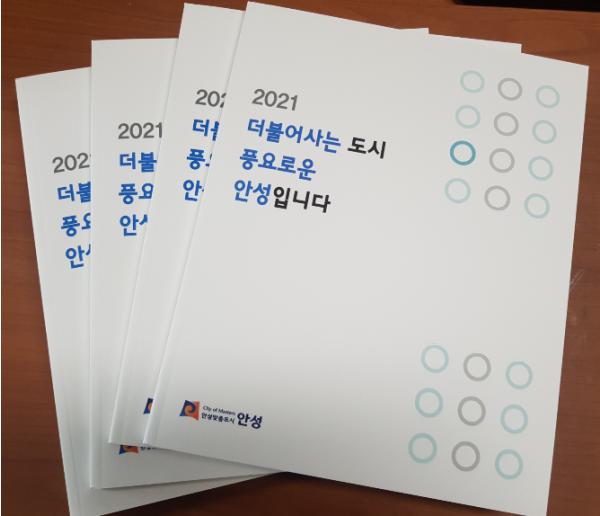 [한국연예축제일보, 유혜경기자] 안성시는 『2021 더불어 사는 도시, 풍요로운 안성입니다』책자를 제작하여 지난 9일, 관·과·소 및 읍·면·동 공무원 전체를 대상으로 배포했다.