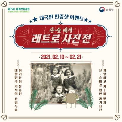 [한국연예축제일보, 유혜경기자] 산림청은 2월 10일부터 세계산림총회 공식 누리소통망을 통해 ‘산·숲 배경 복고풍 사진 인증 행사’를 진행한다.