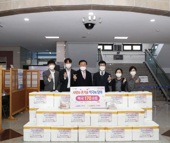농협중앙회 진도군지부는 소고기와 가래떡 170세트를 독거노인응급관리 170세대에 전달하며, 이웃간의 정을 나눴다.