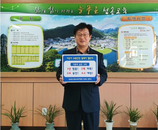 [한국연예축제일보, 서병진기자] 청송교육지원청 김현국 교육장은 2월 10일에 어린이보호구역 내 교통안전 실천 문화 학산을 위해 ‘어린이 교통안전 릴레이 챌린지’캠페인에 동참하였다.