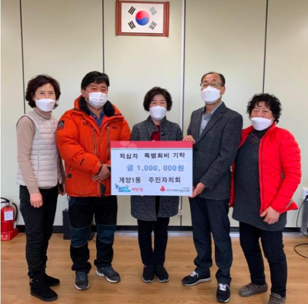 [한국연예축제일보, 유혜경기자] 인천 계양구 계양1동 주민자치회는 지난 9일 계양1동 행정복지센터에 2021년 적십자 특별회비 100만 원을 전달했다.