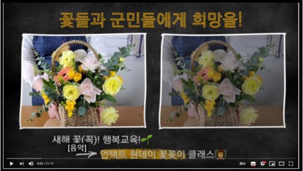 이어 키트를 배부받은 군민들은 지역의 꽃가게 상인대표인 맹선영 영동꽃화원 대표의 영상수업을 유튜브를 통해 시청하며 꽃꽂이를 직접 체험했다.