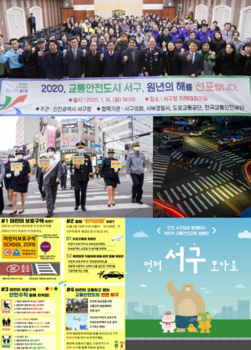 서구가 추진한 ‘교통안전 문화정착 시책사업’은 ▲교통안전 시행계획 수립 및 시설개선 ▲교통안전 홍보·교육 ▲교통수단 안전점검 합동점검 및 특수시책 분야다. 인천시에서는 교통사고 예방을 위해 추진한 서구의 창의적인 홍보 활동에 대해 높이 평가했다.