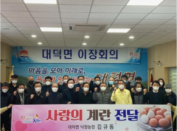 이원용 대덕면장은 “조류인플루엔자(AI) 확산으로 계란 값이 급등하고 있는 요즘 상황에서 많은 양의 계란을 지역어르신에게 선물해 줌에 감사하고, 설 명절을 맞아 풍요와 성공이 함께 하시길 바란다”는 감사의 뜻을 전했다.
