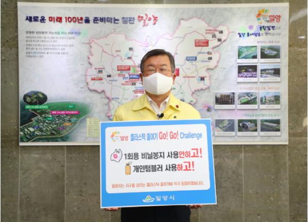 [한국연예축제일보, 유혜경기자] 박일호 밀양시장이 10일 플라스틱 줄이기 운동인 “Go! Go! 챌린지”에 동참했다.