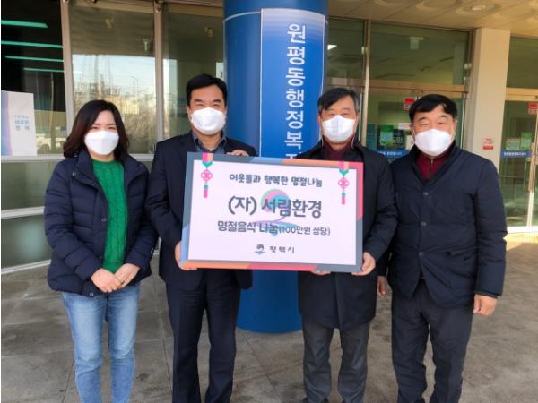 [한국연예축제일보, 유혜경기자] 평택시 원평동행정복지센터(동장 변상용)는 지난 8일 (자)서림환경(대표 이종복)에서 관내 독거어르신을 위한 명절음식 20박스를 기탁했다고 밝혔다.