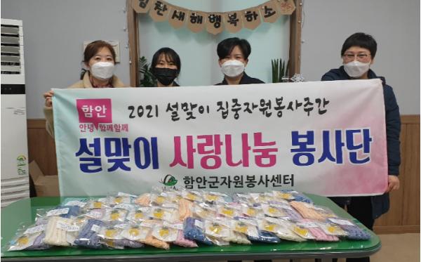 함안군자원봉사센터(센터장 이영학)는 지난 9일 뜨개질전문봉사단이 만든 ‘쁘띠목도리’와 손소독제를 가야시장 노점어르신들게 전달하는 사랑나눔 봉사활동을 실시했다.