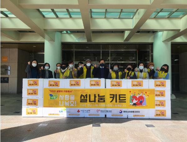 LH 한국토지주택공사 사회공헌활동의 일환으로 진행된「설 나눔 키트」사업은 코로나19 장기화와 재확산으로 생활고를 겪는 취약계층 어르신 지원을 위해 경남사회복지공동모금회, 경상남도자원봉사센터, 통영시자원봉사센터가 함께 힘을 모아 이루어졌다.