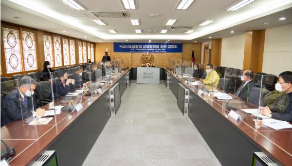 익산시와 원광대는 10일 정헌율 시장과 유재구 시의장, 박맹수 원광대 총장, 윤권하 원광대병원장 등 관계자 15명이 참석한 가운데 지역 상생발전을 위한 교류회를 개최하고 협력 방안을 논의했다.