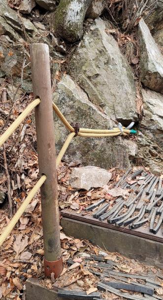 민원인은 “지난 8일 겨울 산행을 위해 용문사에서 마당바위 방향 등산로 구간을 등산하던 중 데크계단 손잡이 밧줄을 지탱하는 지지대가 파손되어 있는 것을 확인하고, 눈이 많이 쌓여 있어 다른 등산객 이용 시 위험이 발생할 것으로 생각하였다”고 한다.