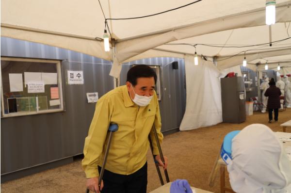 또한 구민의 생명과 안전을 지키기 위해 최전선에서 맡은 바 소임을 다하고 있는 의료진 및 관계자의 애로사항을 청취하며 격무직원에 대한 지원방안을 검토했다.
