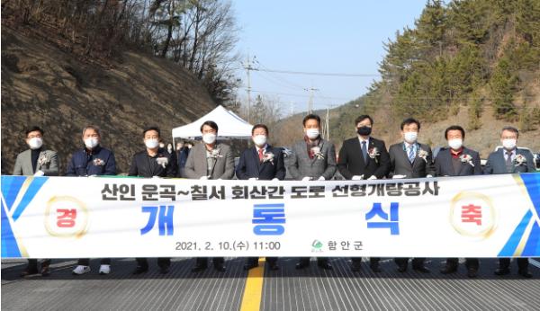 [한국연예축제일보, 유혜경기자] 함안군은 10일 산인면 운곡리와 칠서면 회산리를 연결하는 리도223호선의 ‘산인 운곡~칠서 회산간 도로 선형개량공사’준공을 기념한 개통식을 개최했다.