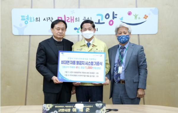 [한국연예축제일보, 유혜경기자] 고양시는 지난 9일, 고양시 충청향우회 연합회와 사회적 기업 ㈜피플월드에서 코로나19 예방을 위한 비대면 자동 열감지 카메라를 각각 2점씩 기증했다고 밝혔다.