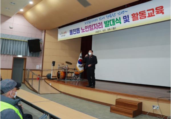 [한국연예축제일보, 김상호기자] 울진군 울진읍(읍장 박금용)은 지난 8일 울진군 종합복지회관에서 코로나19 사회적 거리두기 일환으로 노인 일자리사업 참여자 141명을 오전 70명, 오후 71명으로 2회 나누어 발대식 및 활동교육을 실시 하였다.