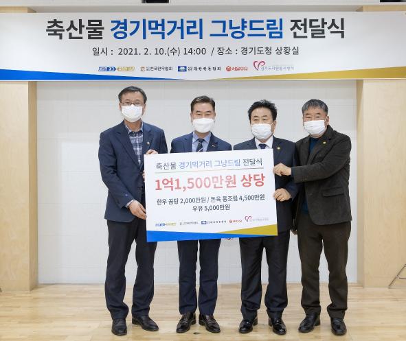 이들 단체에서는 이날 우유 6만2,200개, 한우곰탕 3,500개, 돈육 통조림 2만3,300개 등 총 1억1,500만 원 상당의 축산물을 경기도자원봉사센터에 기탁했다.