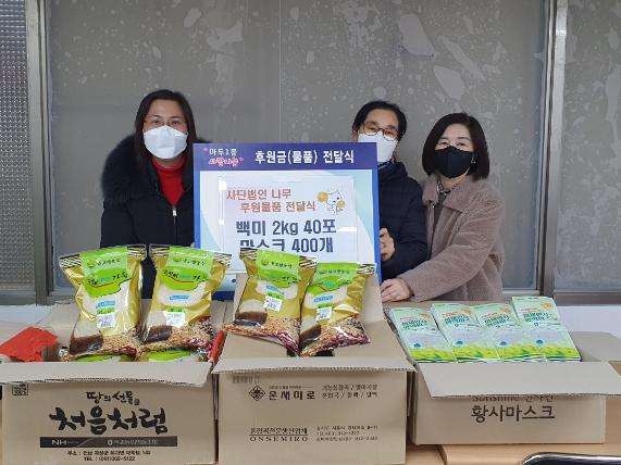 사단법인 나눔나무는 우리 사회의 소외계층에 대한 지원 및 봉사활동을 통해 하나된 복지사회 구현을 목적으로 설립된 봉사단체로 김갑훈 대표는 “후원물품이 복지사각지대 어려운 가정에 작은 보탬이 될 수 있었으면 좋겠다”고 밝혔다.