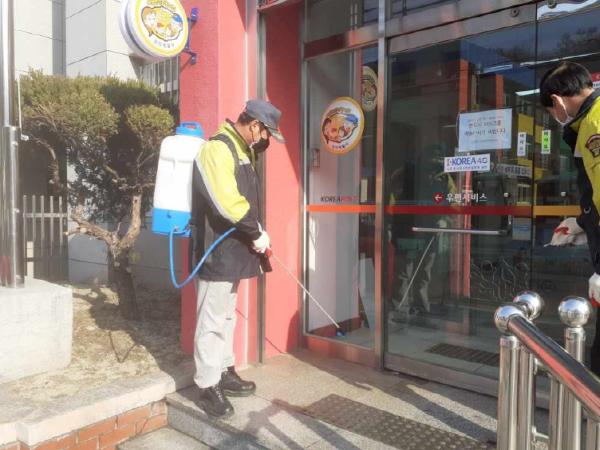 이날 방역활동은 마스크 착용 및 발열 체크 등 코로나19 방역수칙을 엄격히 준수하여 실시하였으며, 두개의 조로 나누어 교리 및 상부리에 위치한 식당가와 농협, 우체국, 버스정류장 등 다중이용 시설을 중심으로 방역을 실시하였다.