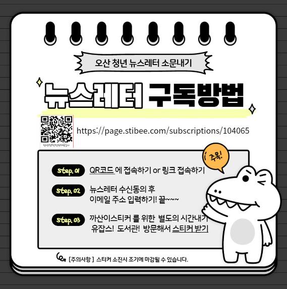 구독방법은 오청레터 구독신청 사이트에 접속하여 본인의 이메일 주소를 입력하면 구독신청이 완료된다.