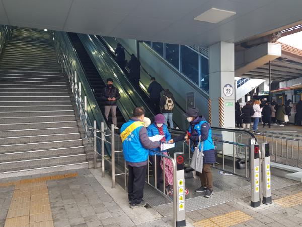이날 자율방재단원 40여 명이 참여하여 설명절 귀성객 등 유동 인구가 많을 것으로 예상되는 전철역, 환승센터와 공중화장실 등에 집중적으로 소독제를 살포하고 방역수칙을 담은 홍보물을 제작하여 시민들에게 배포하였다