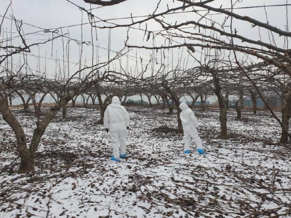 시는 매년 5월부터 11월 사이에 4회의 정기예찰을 실시하였으나, 지난해 안성 내 과수화상병 발생률이 급격히 증가함에 따라 동계예찰(1~2월)을 추가로 진행하며, 지난달 1차 동계예찰을 완료했다.