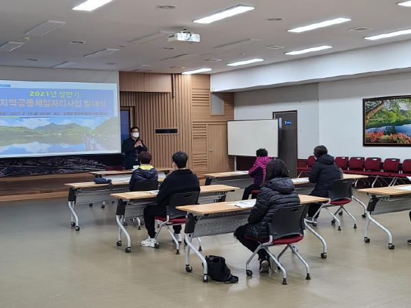 [한국연예축제일보, 유혜경기자] 도량동에서는 2월 15일 9시에 동 행정복지센터 3층 대강당에서 사업 참여자 6명이 참여한 가운데 2021년 상반기 지역공동체일자리사업 발대식과 안전교육을 실시했다.