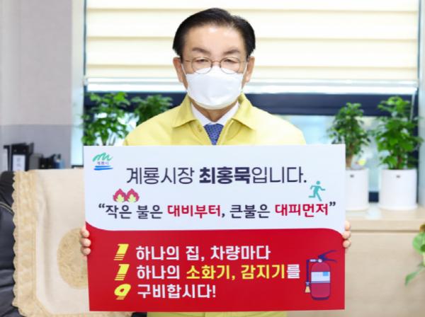 [한국연예축제일보, 유혜경기자] 계룡시는 최홍묵 시장이 지난 10일 주택용 소방시설인 소화기와 화재감지기의 중요성을 알리는 ‘119 릴레이 챌린지’에 참여했다고 밝혔다.