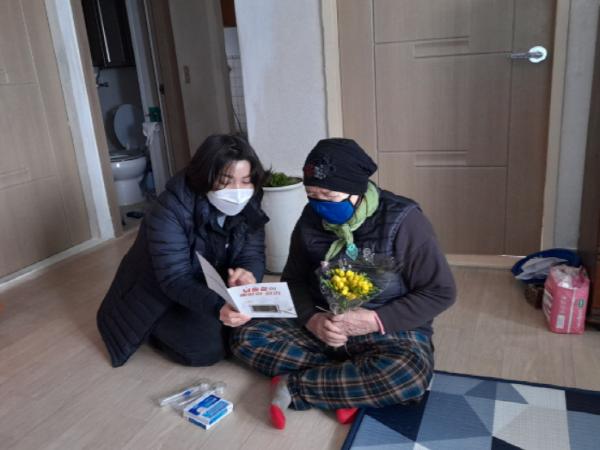 이번 사업은 맞춤형방문건강관리사업의 일환으로 등록관리 중인 독거어르신?재가암환자 300명을 선정하여 방문건강관리 전문인력이 대면 또는 비대면으로 코로나19 예방수칙을 준수하며 꽃을 전달한다.