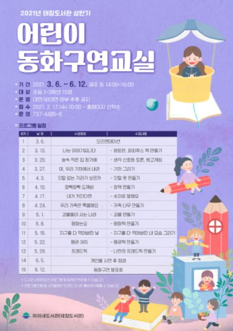 대면 운영의 경우 태장도서관 1층 체험동화관에서, 비대면 운영 시에는 온라인 화상회의 플랫폼(ZOOM)을 활용해 진행할 계획이다.