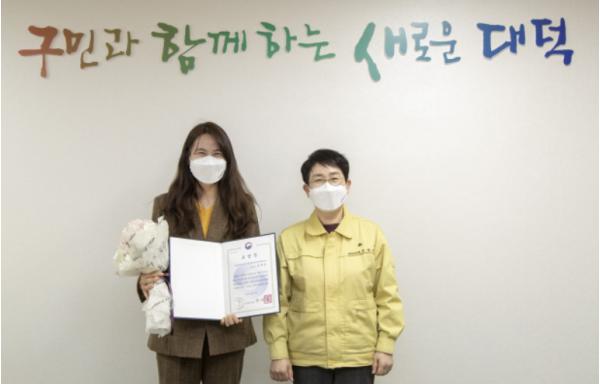 [한국연예축제일보, 유혜경기자] 대전광역시 대덕구는 민들레의료복지사회적협동조합 국현정 센터장이 사회서비스분야 사회적경제 육성 활성화 유공을 인정받아 보건복지부 장관 표창을 수상했다고 밝혔다.