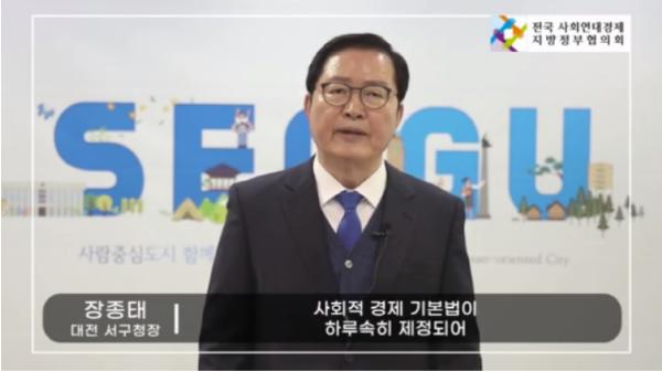 [한국연예축제일보, 이호진기자] 대전광역시 서구 장종태 구청장은 지난 7년간 통과되지 못한 ‘사회적 경제 기본법’의 조속한 통과를 촉구하는 영상메시지를 전달했다.