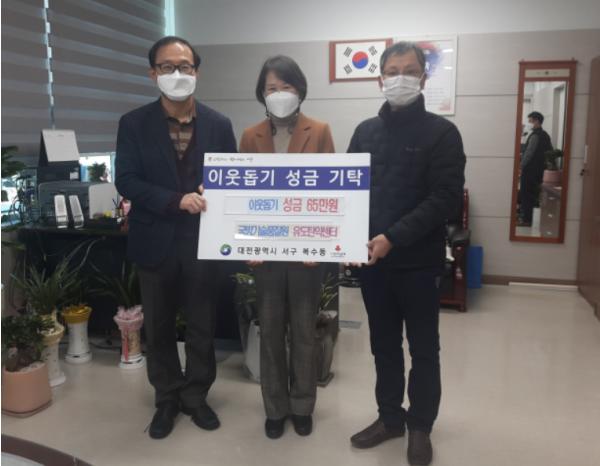 [한국연예축제일보, 유혜경기자] 대전광역시 서구 복수동 행정복지센터는 국방기술품질원 유도탄약센터로부터 이웃돕기 성금 65만 원을 기탁받았다고 15일 밝혔다.