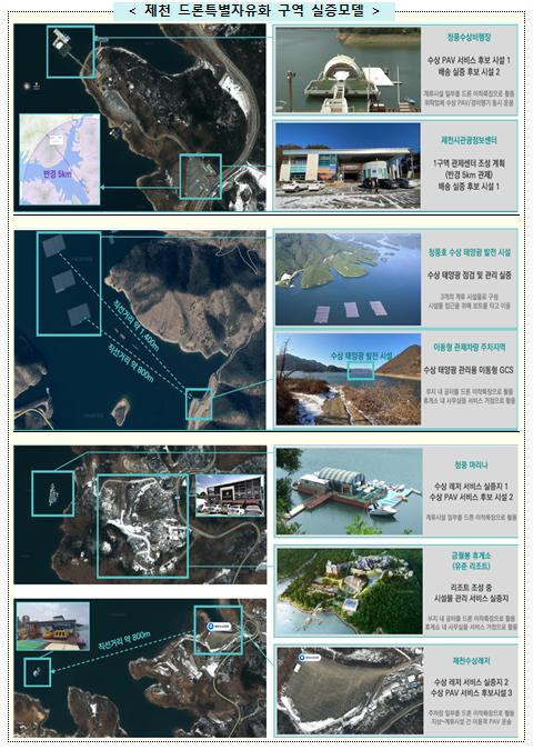 충북도와 제천시는 드론 특별자유화구역으로 지정된 제천 청풍호 내수면을 활용해 수상레저, 드론배송, 수상 시설물점검 및 관리 서비스 실증을 시작으로 안전하고 신속한 다양한 드론서비스 실증을 추진하게 된다.