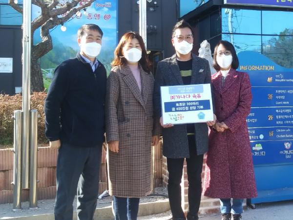 ㈜가나다(대표 최정학)가 9일 돌봄이웃에게 전해 달라며 생닭 300마리를 광산구 송정1동 행정복지센터에 기부했다.