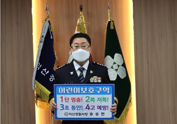 익산경찰서(서장 송승현)는 민식이법 시행 이후, 어린이 보호구역 내 사고를 예방하고 시민들의 공감대를 확산하고자 ‘어린이 교통안전 릴레이 챌린지’에 동참했다.