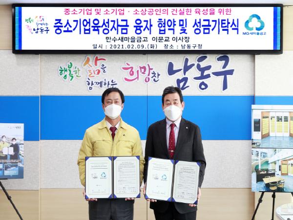 [한국연예축제일보, 안성경기자] 인천시 남동구와 MG만수새마을금고가 최근 중소기업, 소상공인의 건실한 육성과 경영 안정을 위해 ‘중소기업육성기금 융자협약식’ 및 취약계층을 위한 기탁식을 가졌다.