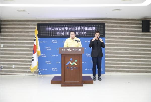 오 시장은 “오늘부터 비수도권 사회적 거리두기가 1.5단계로 하향 조정됐지만, 모두가 보이는 곳, 보이지 않는 곳 모두에서 방역 수칙을 철저히 지켜주셔야 안정된 상황이 이어질 수 있다”면서 “백신 접종이 코앞으로 다가온 만큼 안정된 상황이 유지될 수 있도록 아산시 방역대책본부는 비상한 각오로 특단의 대책을 수립하고 관리하고 있다. 시민 여러분께서도 생활방역에 힘써주시길 부탁드린다”고 덧붙였다.