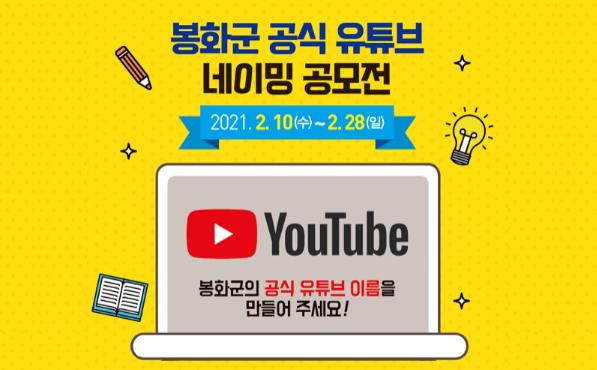 군은 이번 공모전을 통해 올해 새롭게 개설되는 봉화군 공식 유튜브 채널을 널리 알리고, 참신하고 다양한 아이디어를 수렴해 봉화군을 대표할 수 있는 이름을 선정할 계획이다.