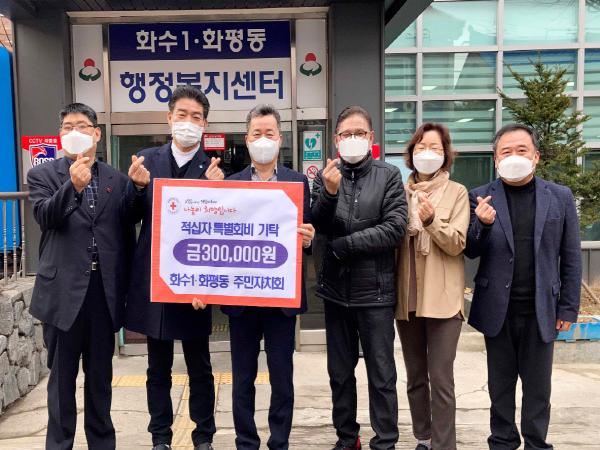 [한국연예축제일보, 유혜경기자] 인천시 동구 화수1·화평동 주민자치회(회장 김동주)는 지난 15일 30만 원의 적십자 특별회비를 모아 대한적십자회에 전달했다.