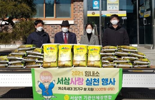 [한국연예축제일보, 유혜경기자] 장성군 서삼면 기관단체협의회가 100만원 상당의 백미(10kg 들이 35포)를 지역 내 어려운 이웃을 위해 기탁했다. 기탁품은 35호의 마을 이웃에 전달될 계획이라고 밝혔다.