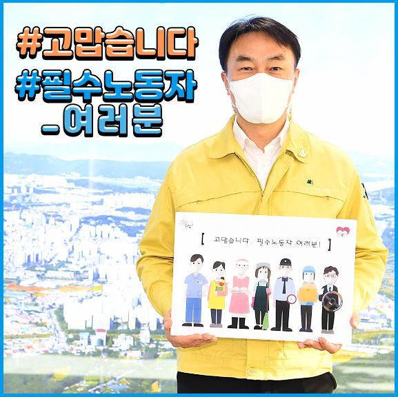 김 시장은 박성수 송파구청장과 이항진 여주시장의 지목을 받아 지난 15일 ‘고맙습니다! 필수노동자’캠페인에 동참했다.