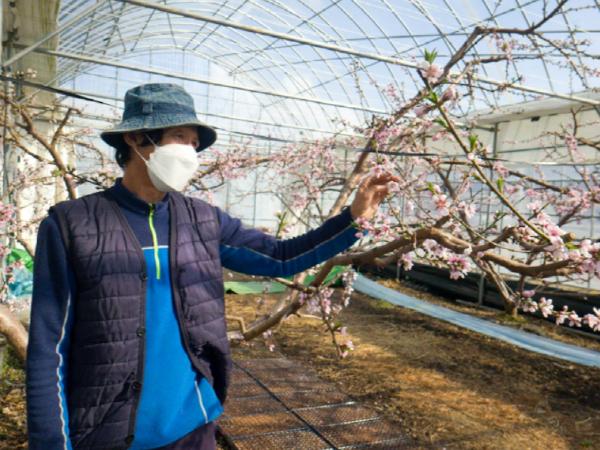 복숭아 시설하우스는 지난해 12월 말부터 가온해, 2월 초순부터 붉은색 꽃송이를 터트리기 시작했다.