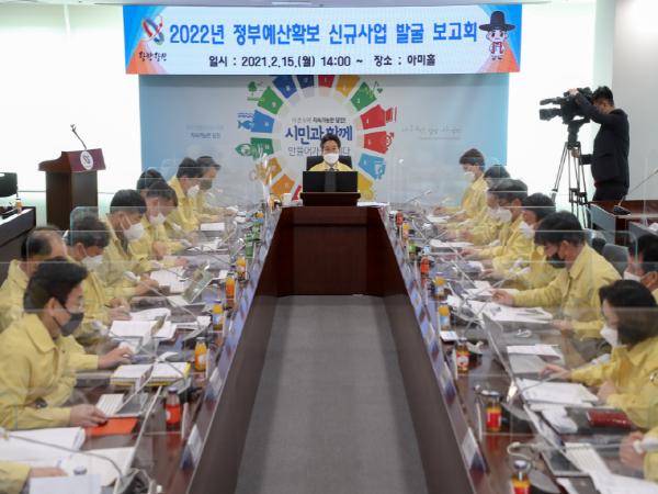 이날 시는 한국형 뉴딜과 신재생에너지 사업 확보에 중점을 두고 정부예산 확보대상 사업을 선정했으며, 정부예산 확보 목표는 신규사업과 지역현안 사업을 총 포함해 93개 사업과 7958억 원이다.