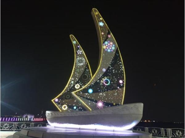 이에 시에서는 관광콘텐츠 강화사업의 일환으로 시를 상징하는 기존 돛단배 모형의 조형물에 광섬유를 설치해 형형색색의 생동감 있고 화려한 조명을 구현했다.